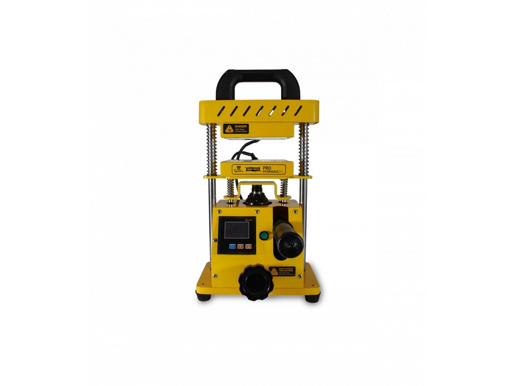 A Qnubu márka kézi hidraulikus kenderprése, más néven Rosin Press-e, Pro Hydraulic 2T elnevezéssel, termikus fűtéssel és 2000 kg-os (2 tonnás) erővel.