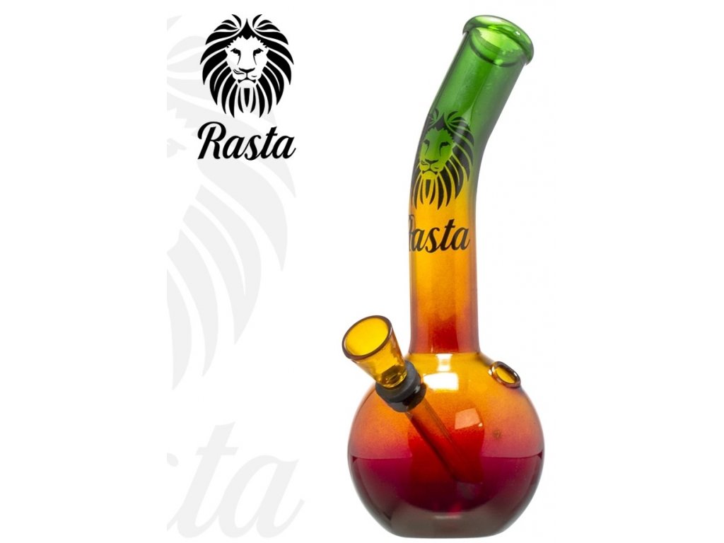 Alap formájú üveg mini bong rasta színekben, 18 cm-es méretben, eredeti motívummal.