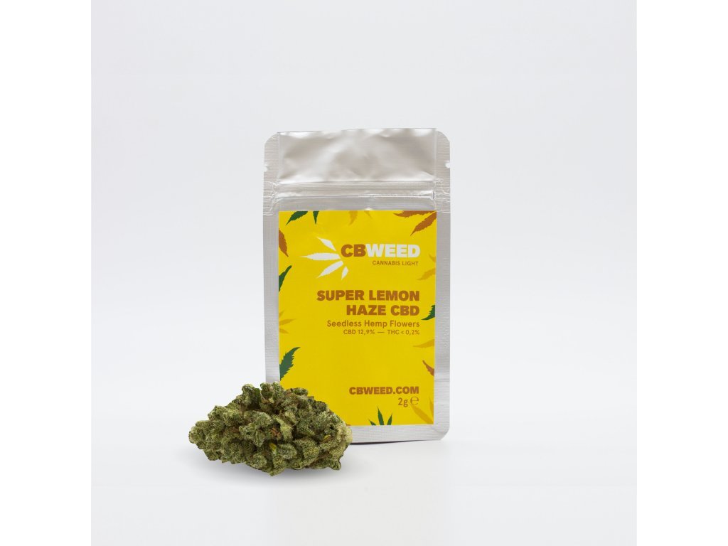 Super Lemon Haze-féle kendervirágok akár 13%-os CBD-tartalommal, 2 vagy 5 grammos kiszerelésben, a CBWEED márkától.