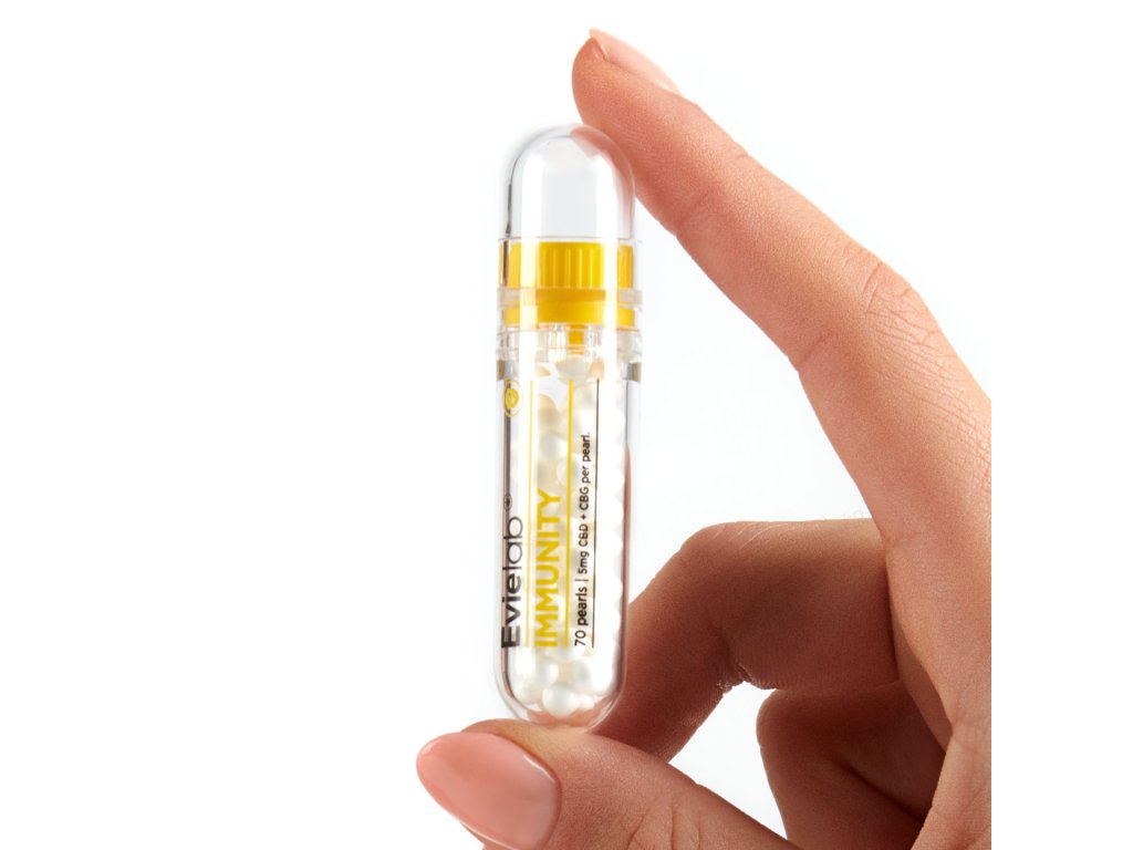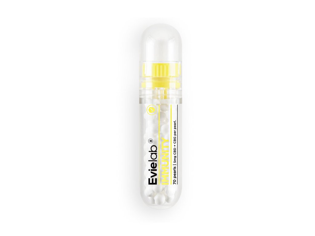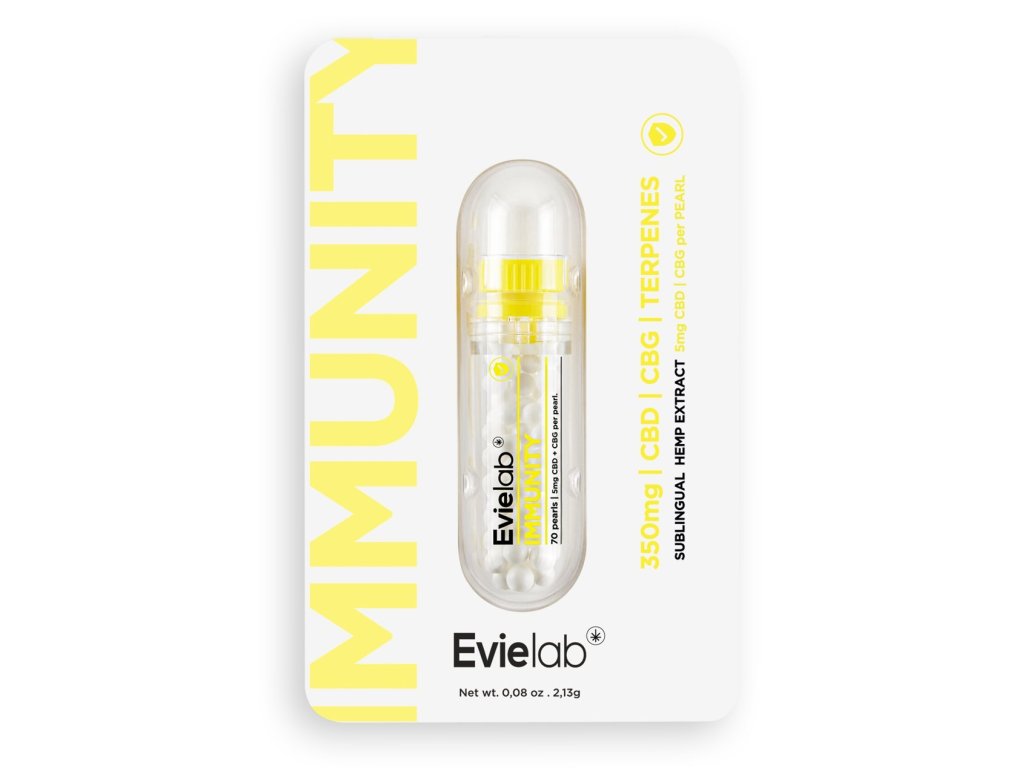 A francia EvieLab társaság a kannabisz-alapú CBD étrend-kiegészítők gyártására specializálódott. Az egyik legnépszerűbb termékük a CBD-tartalmú gyöngyök, amelyek biztosítják a CBD megfelelő adagolását a mindennapokban. Egy csomag CBD-gyöngy 350 mg kannabiszkivonatot (CBD, CBG) tartalmaz, ami 70 különálló gyöngyre osztva 5 mg/gyöngy mennyiséget jelent. A maximálisan ajánlott napi mennyiség 5 gyöngy, azaz 25 mg CBD/CBG. A termék vegán, gluténmentes és genetikailag nem módosított anyagokból készül. Emellett THC-t sem tartalmaz.