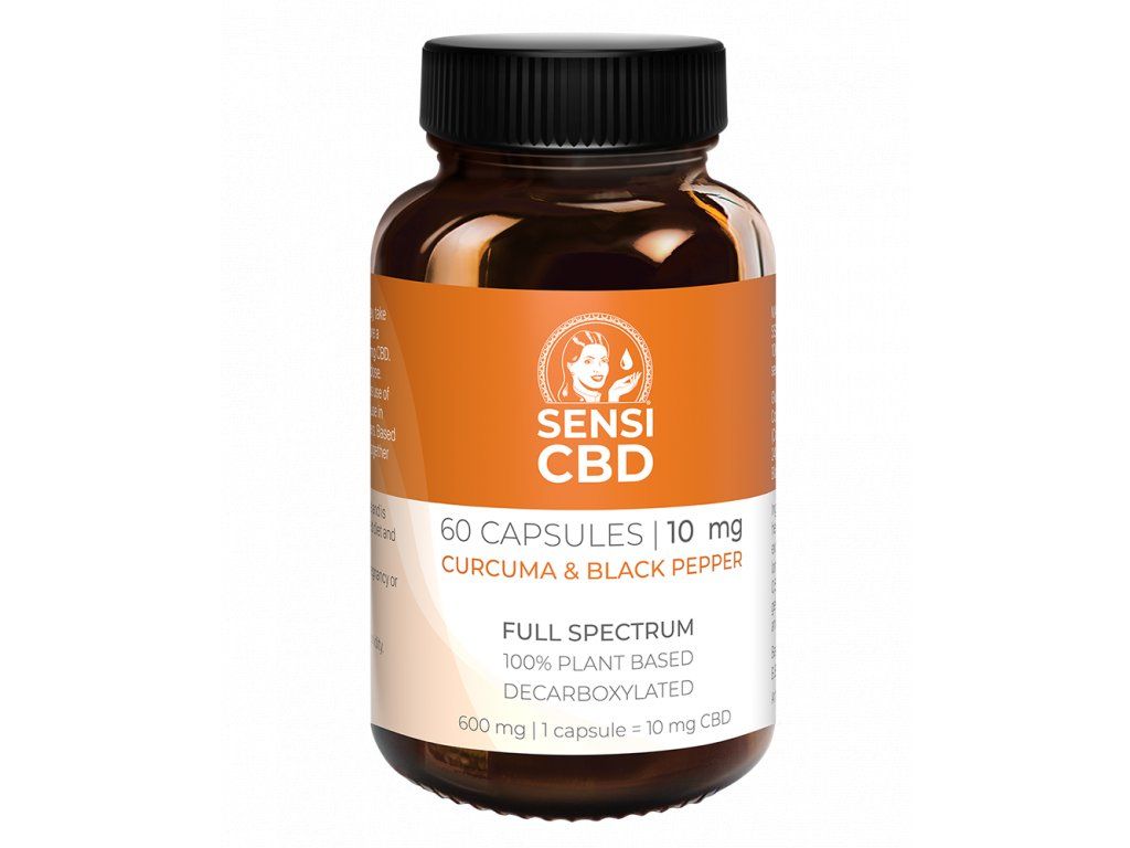 CBD kenderkapszula teljes spektrumú olajjal és magas CBD-, kurkuma- és fekete bors kivonat-tartalommal. Minden CBD kapszula 10 mg CBD-t, 24 mg kurkumát, 2,5 mg fekete borsot és szinte 0% THC-t tartalmaz.