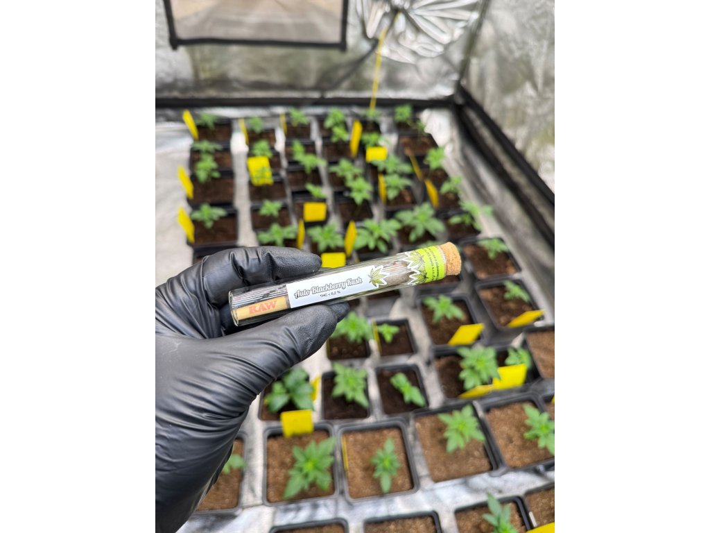 Ezeket az előre sodort (pre-rolled) jointokat az Auto Blackberry Kush kender-féle virágaiból sodorjuk.