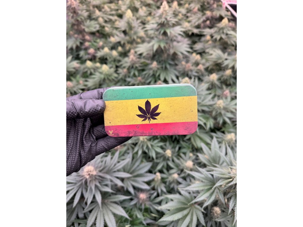 Nagyméretű és kiváló minőségben elkészített fém tároló az amerikai V-Syndicate cégtől. A fém boxra vagy a kendertárolóra kenderlevél motívuma van nyomtatva, amelyet hagyományos rasta színű csíkok egészítenek ki. Ez a tároló vagy dobozka kenderre kimondottan szép, és stílusos a kialakítása. Elég nagy ahhoz, hogy egy kis joint-ot, öngyújtót, de egy szárat is tarthasson benne az orvosi marihuánájából. Természetesen egyéb tárgyak tárolására is alkalmas.