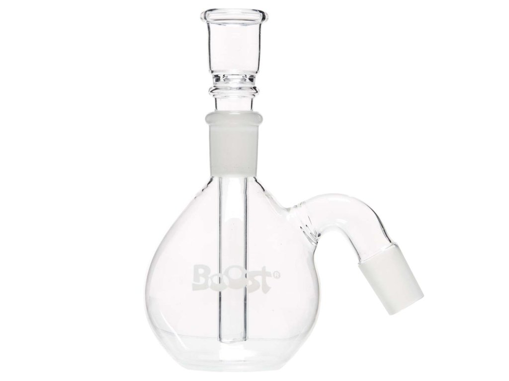 Boost márkájú üveg előhűtés a gyártó egyedi logójával. Ez az előhűtés a 18,8 mm vastagságú bongókhoz alkalmas. Nagyszerű választás mindazok számára, akik még jobb dohányzási élményt szeretnének kihozni egy hagyományos bongból.
