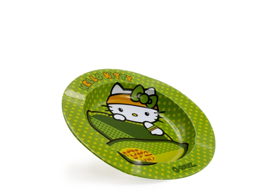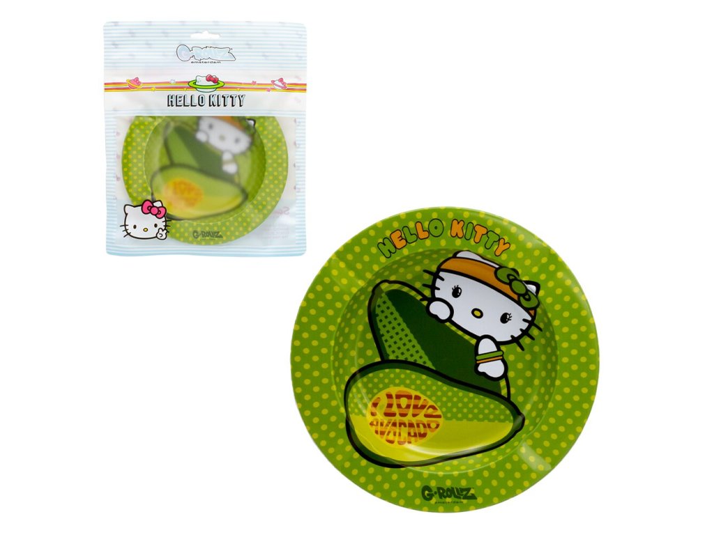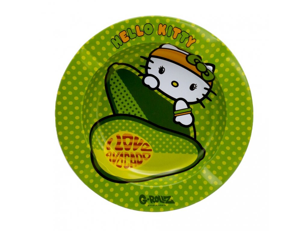 Fém hamutartó színes és eredeti Hello Kitty Avocado motívummal, amely 13,5 cm átmérőjű. A G-Rollz márka hamutartójára a népszerű Hello Kitty motívumot nyomtatták zöld kivitelben, egy avokádóval. A fém hamutartó nagyszerű és olcsó alternatívája a klasszikus üveg hamutartóknak, és szinte mindenhol alkalmas, ahol egy üveg hamutartó összetörhet. A rendkívül tartós, színes nyomtatással ellátott hamutartó tökéletes ajándék vagy bármely Hello Kitty rajongó számára ideális.