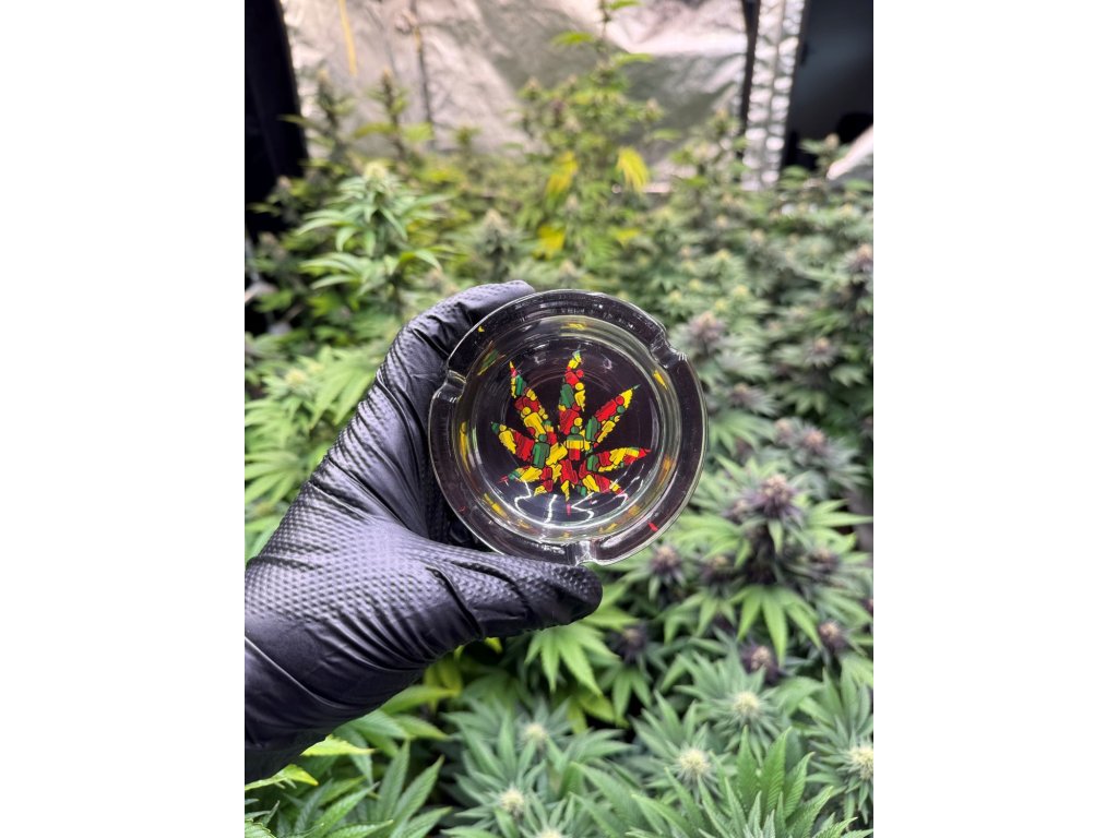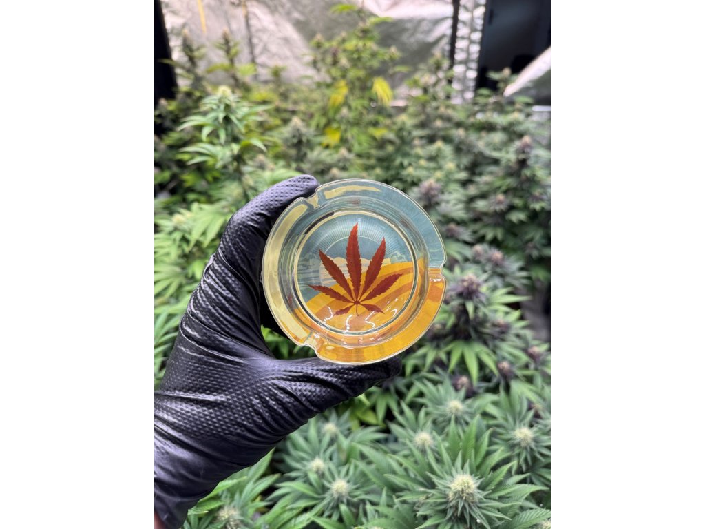 Kisméretű üveg hamutartó - Kenderlevél