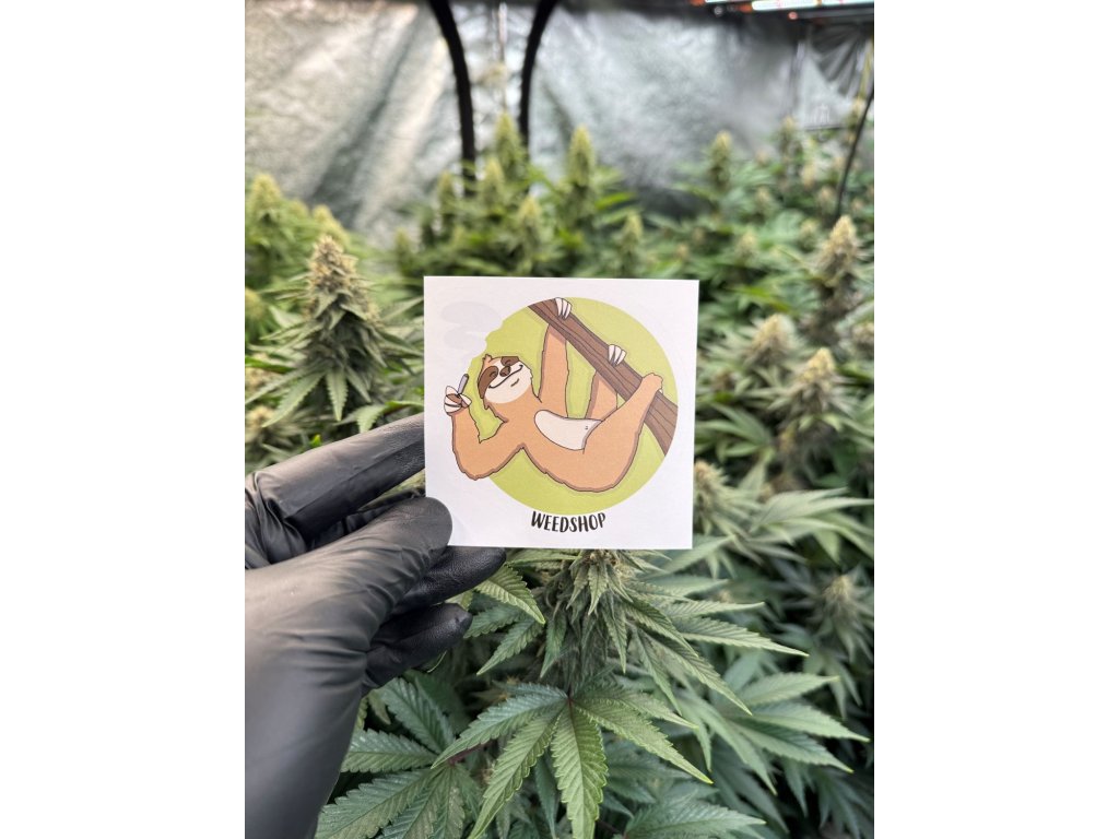 Ezt és az összes többi matricát általában nagyobb vásárlásokhoz szoktuk adni, de a nagy érdeklődésre való tekintettel úgy döntöttünk, hogy lehetővé tesszük a különálló értékesítésüket is a webáruházunkban. A matricán a tipikus kabalafiguránk, egy lajhár található, amely fáról lóg és jointot tart a kezében, amit minden kenderfogyasztó jól ismer.