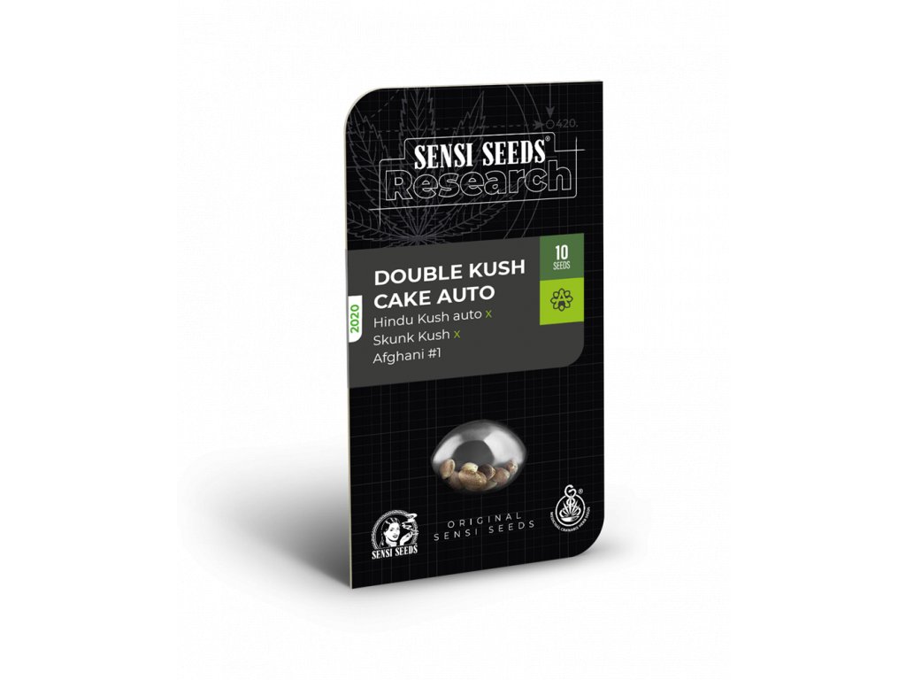 Automatikusan virágzó, egyúttal feminizált kendermagok a Sensi Seeds seedbank Double Kush Cake Auto-féléjéből. A Double Kush Cake Automatic egy újdonsága ennek a seedbanknak, amely meglepetést okoz a kifejezetten fűszeres aromájával, amelyet földes jegyek egészítenek ki. Ráadásul a kezdők körében is népszerű, mivel a növény nem igényes a termesztésre, nincs szüksége túlzott gondozásra és rendkívüli tapasztalat sem kell hozzá. Még rosszabb körülmények között is képes nagyszámú, gyönyörű illatú virágot hozni. Kifejezetten robusztus növény jó tulajdonságokkal, amely legfeljebb a 150 cm-es magasságot éri el. Teljes életciklusa rendkívül rövid, csupán 7-9 hét alatt fejeződik be. Ez, a csírázástól számítva, hihetetlen 49-63 napnak felel meg. A növény génjeiben olyan, a kender világában jól ismert nevek találhatók, mint az Afghani, a Skunk Kush vagy a legendás Hindu Kush.