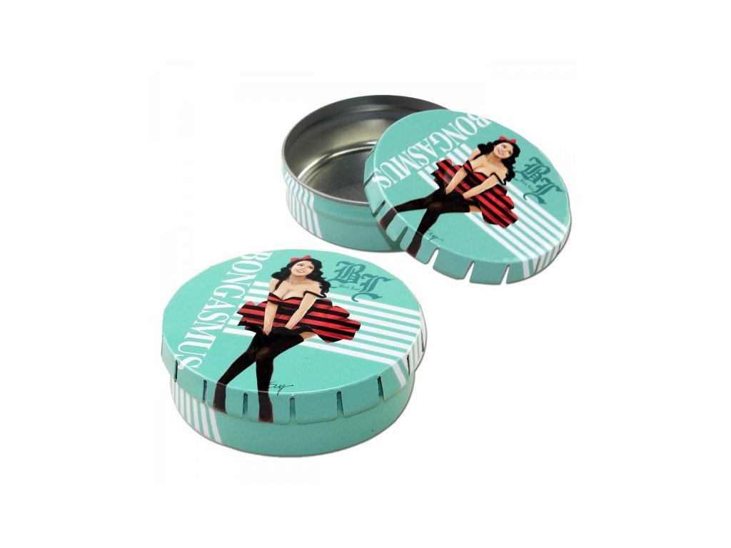 Egyszerűen nyomja meg a fedél közepét, és a fémdoboz kinyílik. A lezáráshoz gyakoroljon nyomást a fedél oldalára a közepe irányába. Tároló eredeti Bongasmus motívummal.