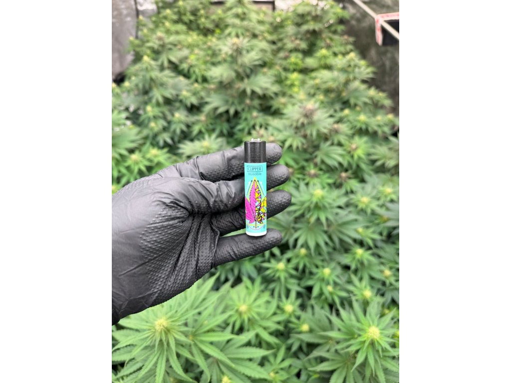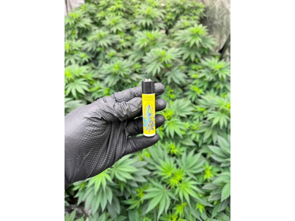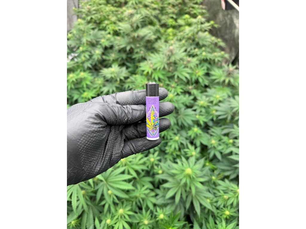 Gyűjtői Clipper öngyújtók a Geometrical Leaves nevű gyűjteményéből. Az öngyújtókra színes kenderlevélmotívumok vannak nyomtatva.