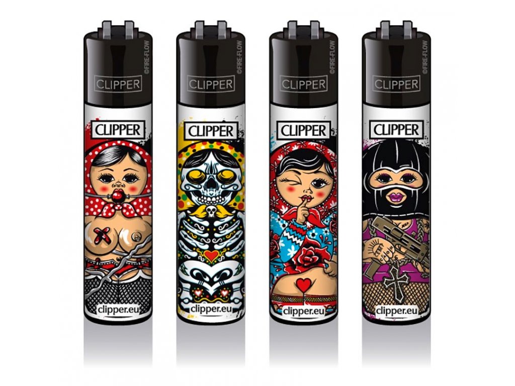 Clipper öngyújtók kollekciója Matrjoska néven, amelynek különlegessége a minőségi, nyomtatott képei un. Matrjoska-stílusban, avagy Babák stílusában. Ebben a kiadásban minden öngyújtónak más a dizájnja, ezért nagyon szép ajándék lehet egy gyűjtő számára. Minden Clipper öngyújtó minőségi műanyagból készül, ennek köszönhetően kibírnak jó pár ütést, a gyártó állítása szerint pedig teljes töltéssel akár 3000 gyújtást is kibírnak. Tűzmagasságuk előre beállított, így nyugodtan el is felejtheti a tűz állítgatását a gáztartalomhoz igazodva.