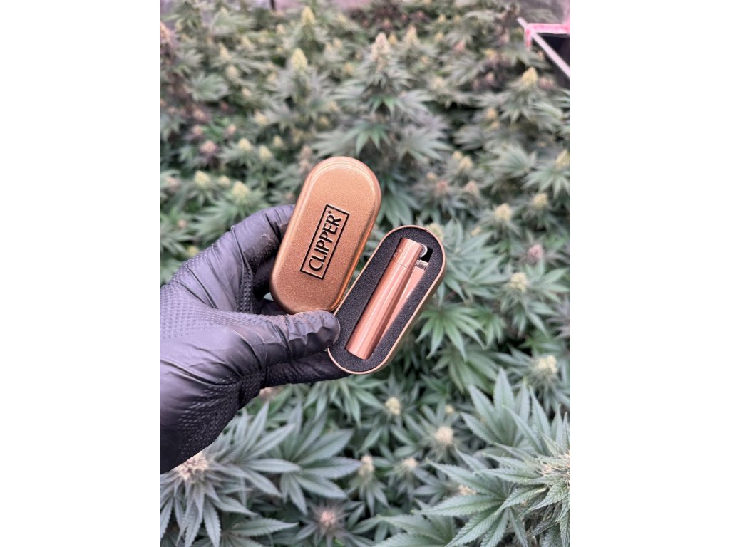 Ajándékdoboz, avagy Gift Box egy népszerű Clipper öngyújtóval, klasszikus méretben, szép színnel, amely a rózsaaranyra emlékeztet.