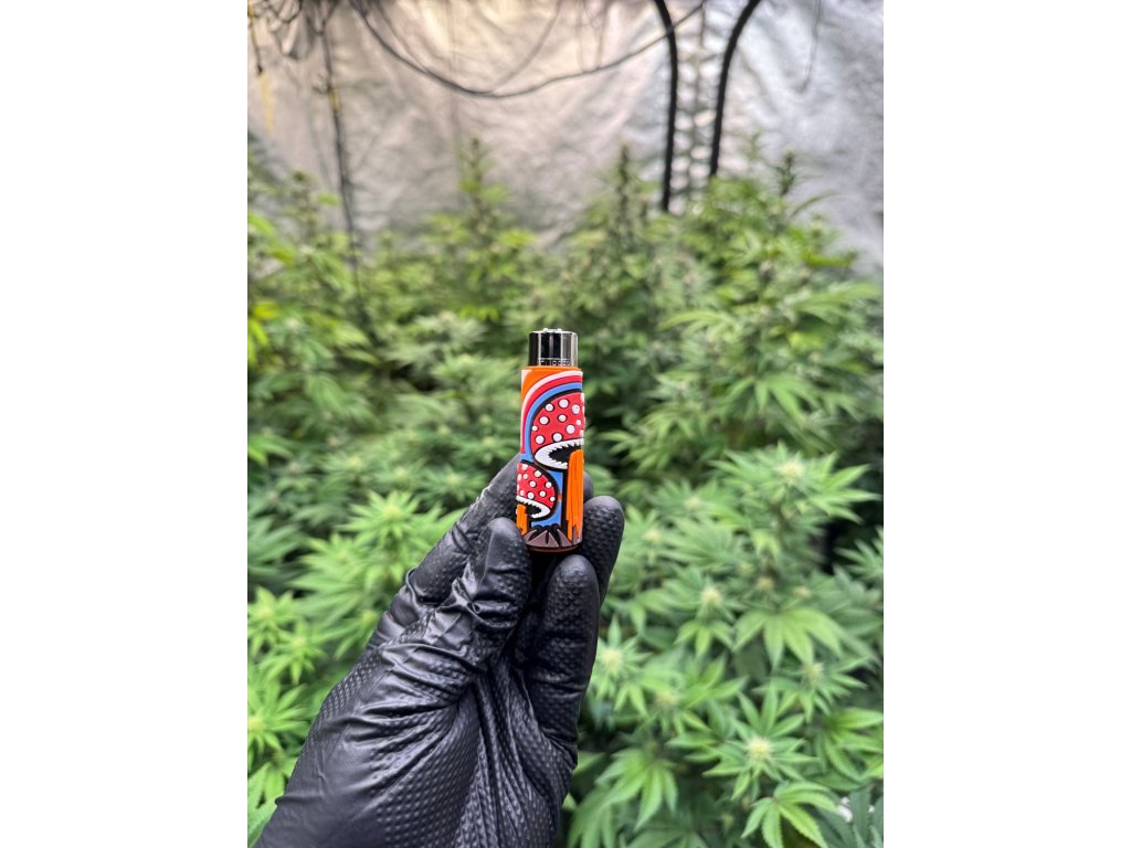 Pop Covers Clipper öngyújtó gumiborítással, gombás motívumokkal.