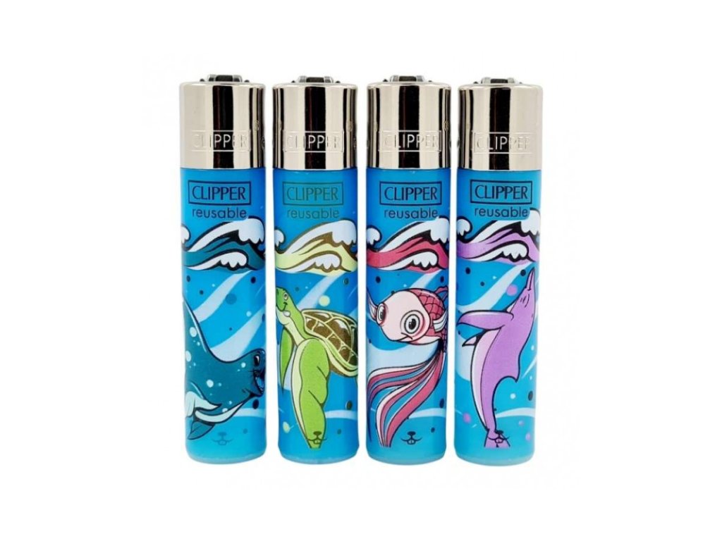 Clipper öngyújtók a Wild Clan 2 gyűjtői készletből. Az öngyújtókra vidám vadon élő állatok képei vannak nyomtatva, ezúttal az óceánból, 4 különböző mintában.
