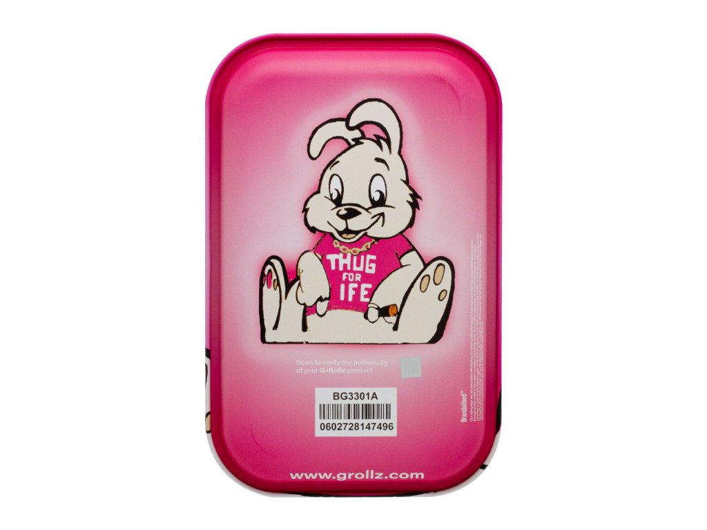 Kiváló minőségű, közepes méretű rózsaszín sodrótálca vagy alátét a G-Rollz márkától. A Thug for life fémalátét mérete 17,5 x 27,5 cm, és egy stílusos, jointot tartó nyuszi képe van rá nyomtatva, aranyos rózsaszín pólóban, valamint Thug for life felirattal.