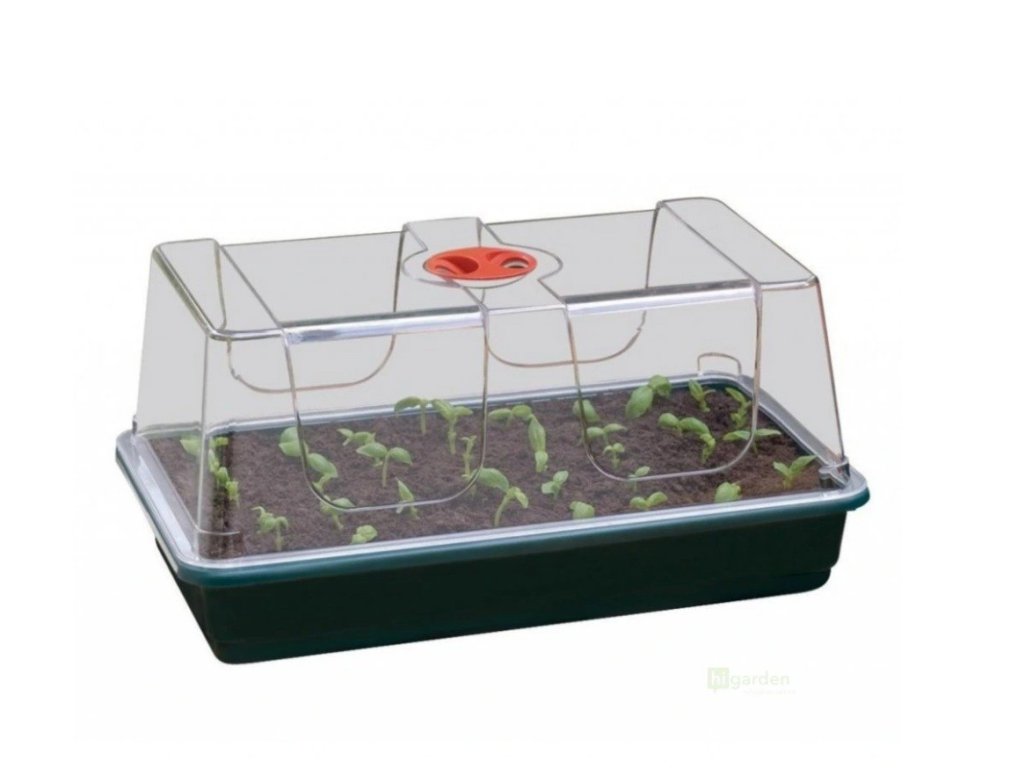 Strapabíró, kemény műanyagból készült mini palántanevelő üvegház 37,5 × 23 × 18 cm méretben, amely az állítható szellőzésnek köszönhetően ideális mikroklímát biztosít dugványok és fiatal palánták számára. Kiváló segítség a sikeres csíráztatáshoz, maximális fényáteresztéssel és hosszú élettartammal.