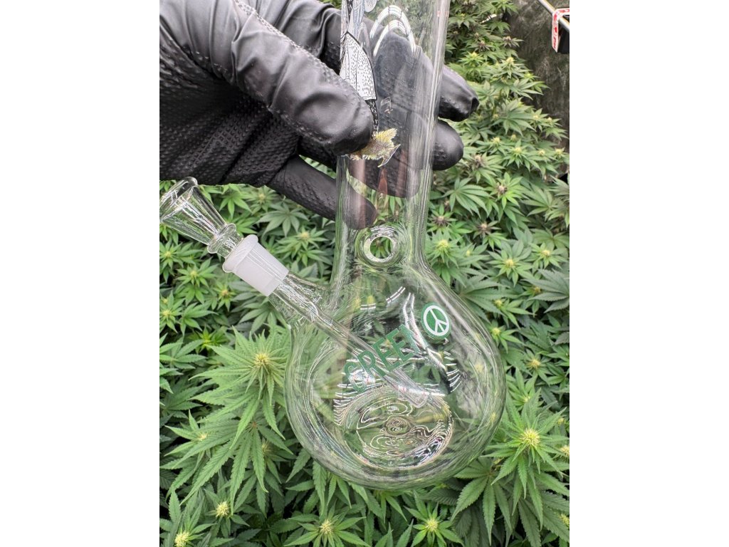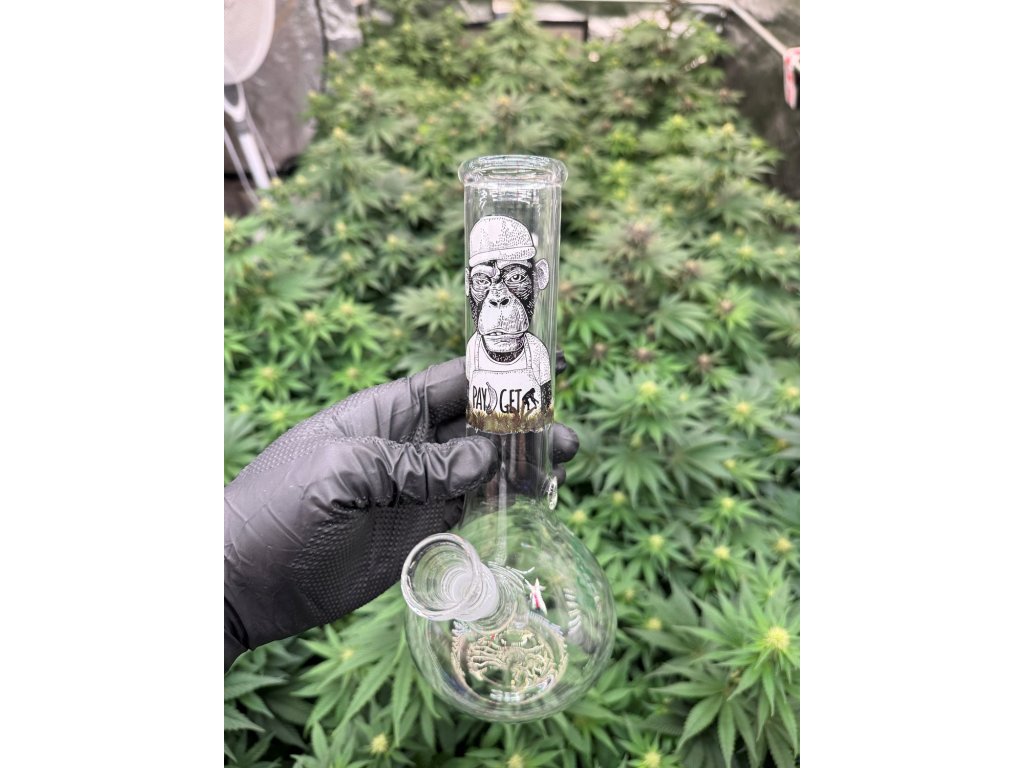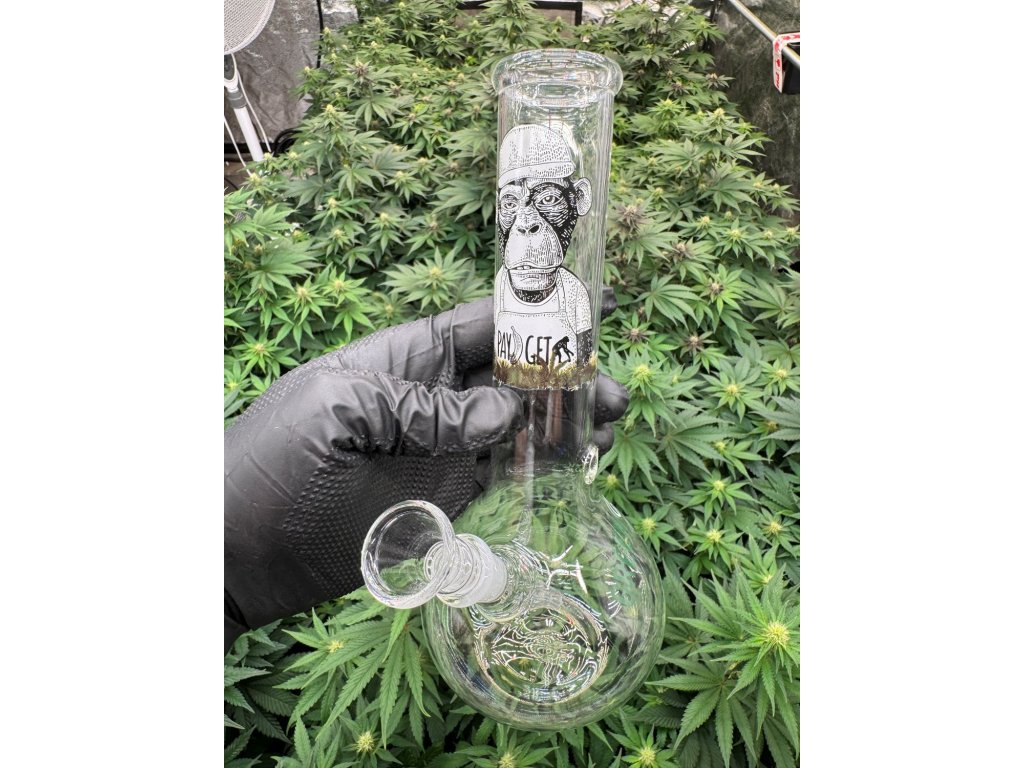25 cm magas üveg kisméretű bong egy majom eredeti motívumával. Kellően nagyméretű a lombikja van a vízre, és turbóval is ellátták. Kisméretű, ötletes bong szuper áron, kevésbé igényes dohányosok számára.