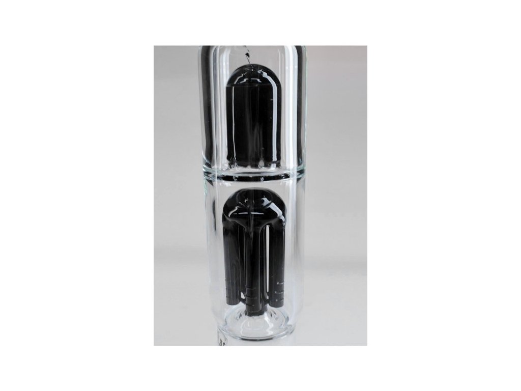 38 cm magas bong, két fekete színű perkolátorral és 4 mm vastag üvegből készítve.